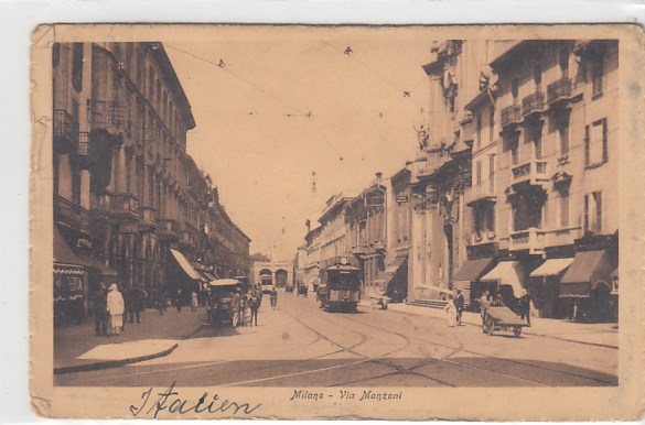Milano Italien Italy old postcard alte Bilder Via Manzoni Strassenbahn 1924