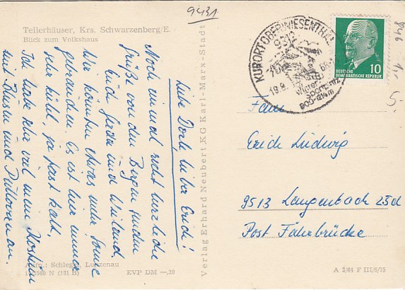 Tellerhäuser im Erzgebirge Volkshaus 1964