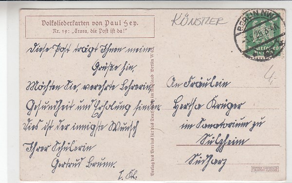 Künstlerkarte Paul Hey Volksliederkarten Nr. 20