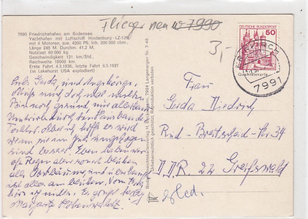 Privatganzsache Zeppelin Luftschiff Bodensee