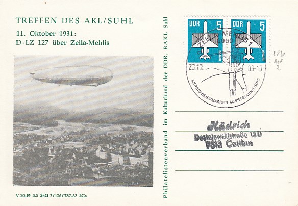 Zella-Mehlis in Thüringen Anlaß Postkarte Zeppelin