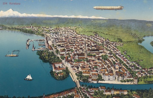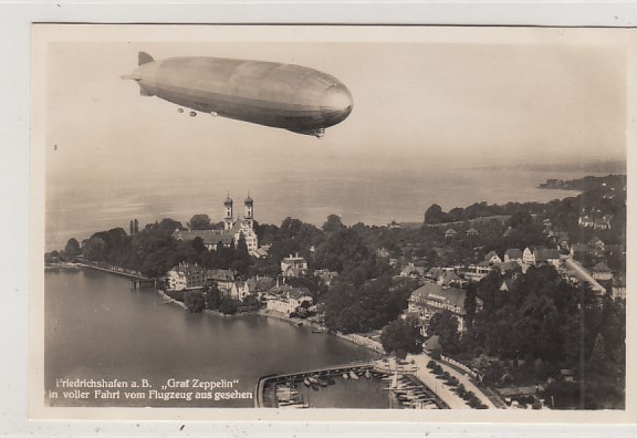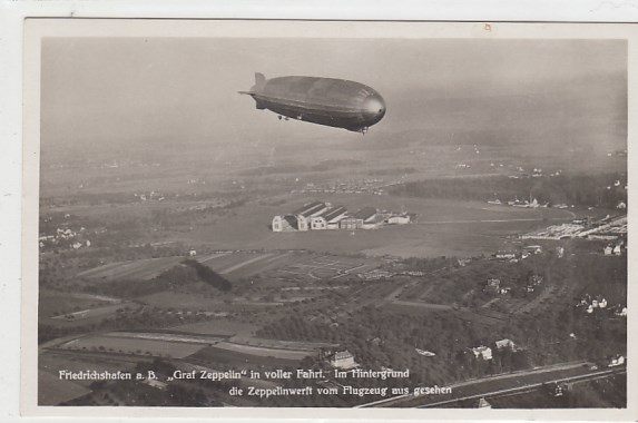 Friedrichshafen am Bodensee mit Zeppelin-Luftschiff ca 1930