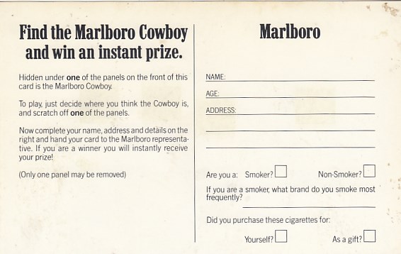248 [m10401] |  | Werbung Reklame Zigaretten Malboro Cowboy | 3.00EUR | In den Warenkorb |
