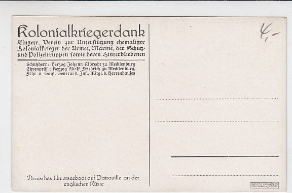Marine 1.WK U-Boote Unterseeboot rückseite mit Bild , Weddigen 1913