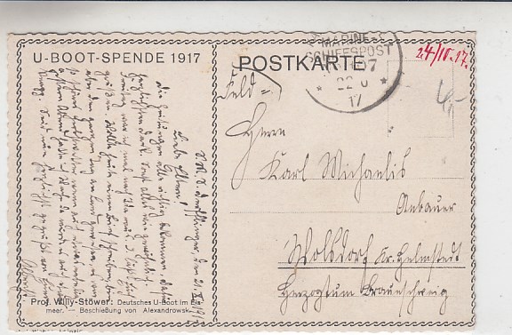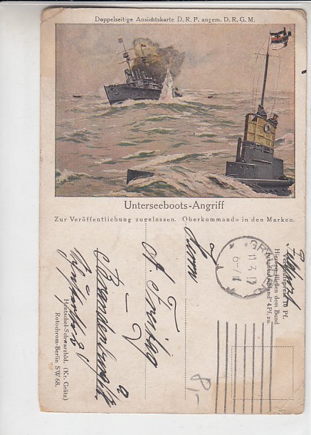 Marine 1.WK U-Boote Unterseeboote Feldpost