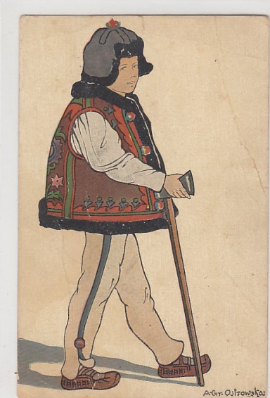 Volkstrachten alte Ansichtskarten Polen Künstlerkarte Ostrowska