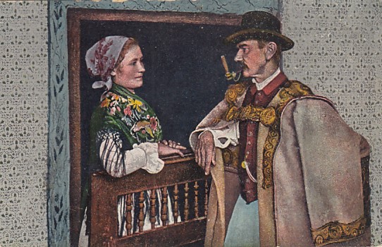 Volkstrachten alte Ansichtskarten Pfeife Rauchen