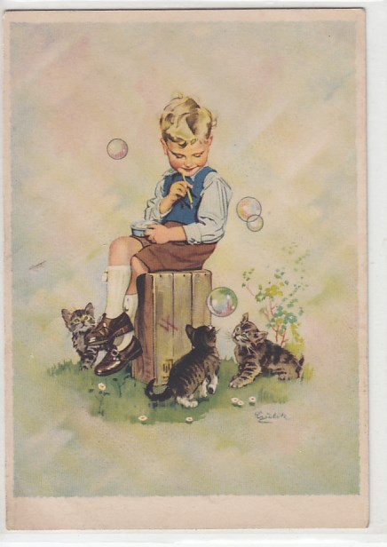 Kinder Künstlerkarte mit Katze 1927