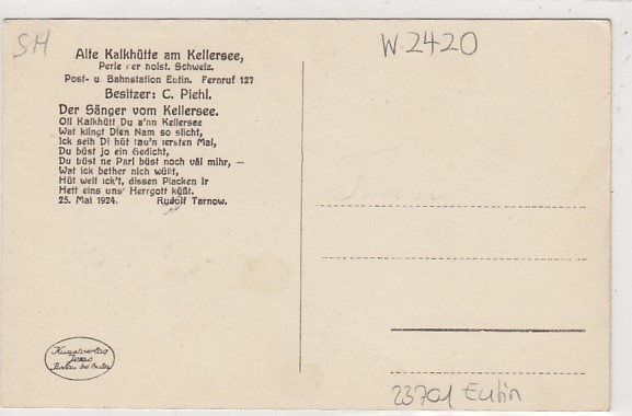 Eutin in Holstein Der Sänger vom Kellersee Kalkhütte ca 1925