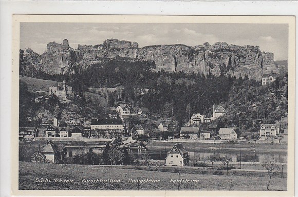 Rathen an der Elbe mit Rauentein ca 1920