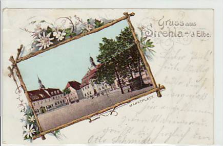 Strehla an der Elbe Litho Anischtskarte von 1898