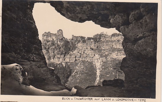Talwächter Lamm und Lokomotive bei Königstein an der Elbe 1930