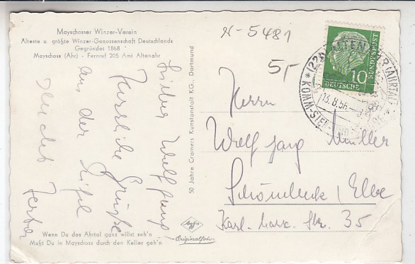 1100 [5481w85] |  | Mayschloss Ahr Weinkeller Altenahr 1956 | 5.00EUR | In den Warenkorb |