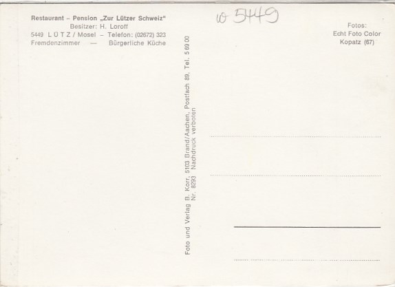 1085 [5449w2] |  | Lütz Mosel Lützbachtal ca 1965 | 4.00EUR | In den Warenkorb |