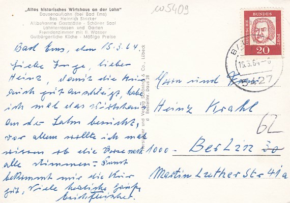 663 [5409w32] |  | Dausenau Lahn Wirtshaus an der Lahn 1964 | 3.00EUR | In den Warenkorb |