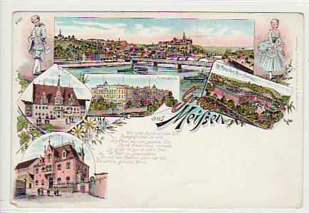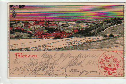 Meissen Meißen Geipel-Burg Litho Ansichtskarte von 1899