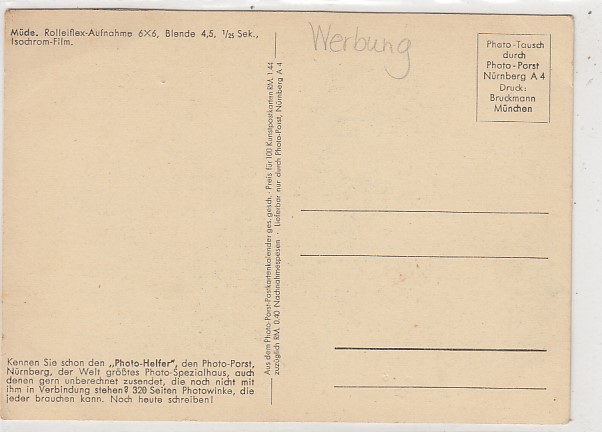 alte Ansichtskarten Thema Werbung Reklame Kamera Rolleiflex-Aufnahme Photo-Porst Nürnberg