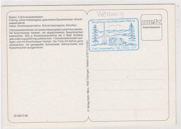 alte Ansichtskarten Thema Werbung Reklame Stilleben Schwarzwald Alkohol Kuchen