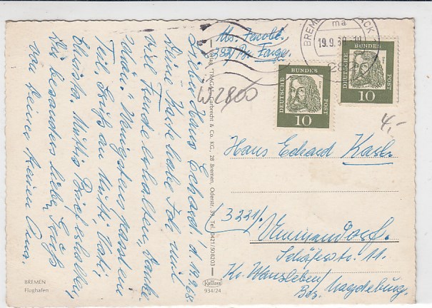 Briefmarken auf AK nach 1945 Ansichtskarten Postkarten