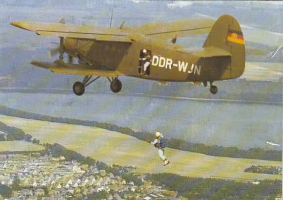 DDR GST Doppeldecker Fallschirmspringen Flugzeuge