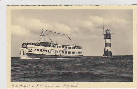 584 [m110106] |  | Motorschiffe Dampfer Oceana am Leuchtturm Roter Sand Nordsee ca 1940 | 5.00EUR | In den Warenkorb |