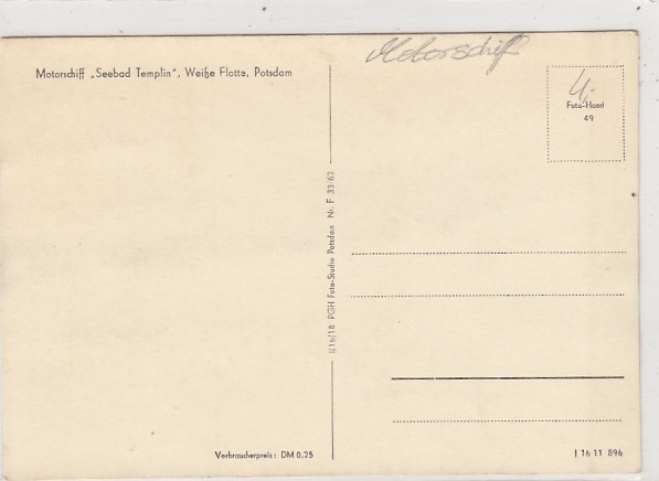 561 [m11548] |  | Motorschiff Templin Weiße Flotte Potsdam | 3.00EUR 1.50EUR | In den Warenkorb |