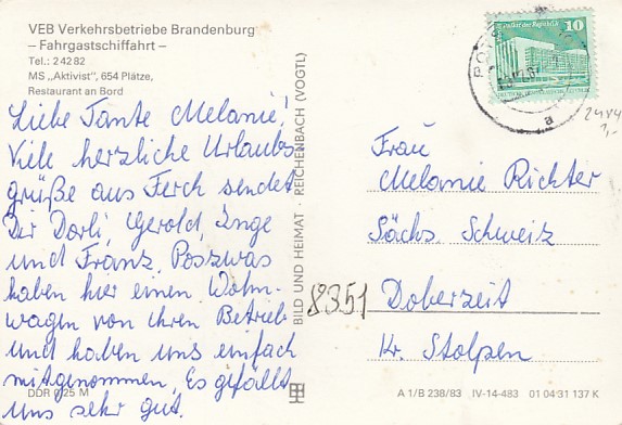 528 [m11577] |  | Motorschiff Aktivist Weiße Flotte Brandenburg Havel 1970 | 3.00EUR 1.50EUR | In den Warenkorb |