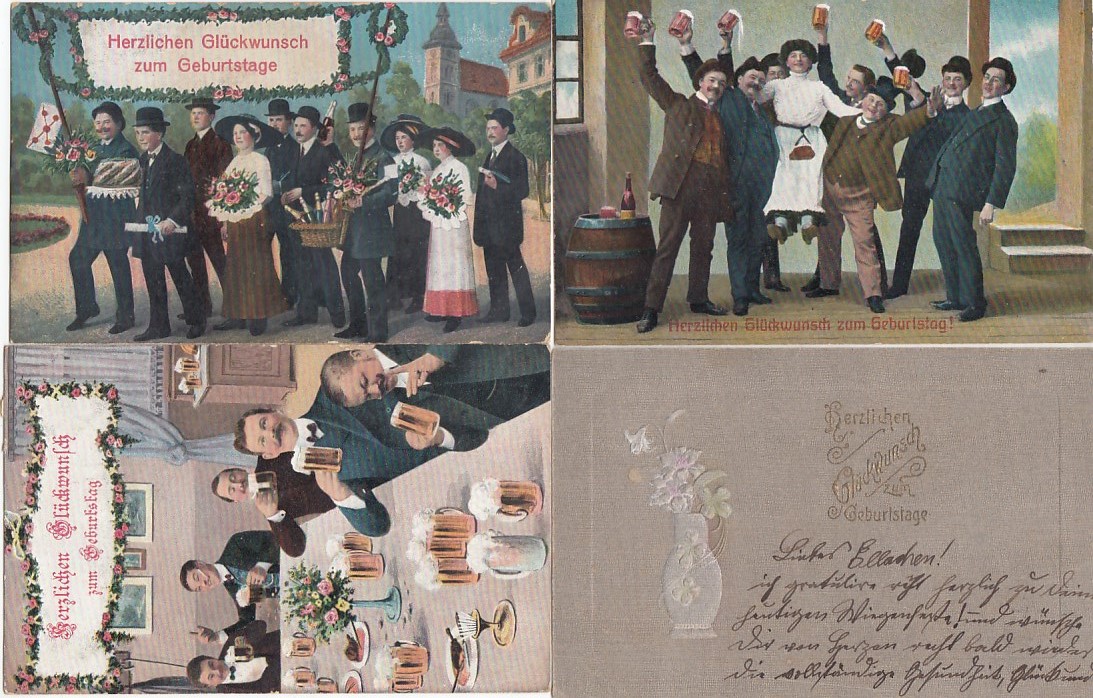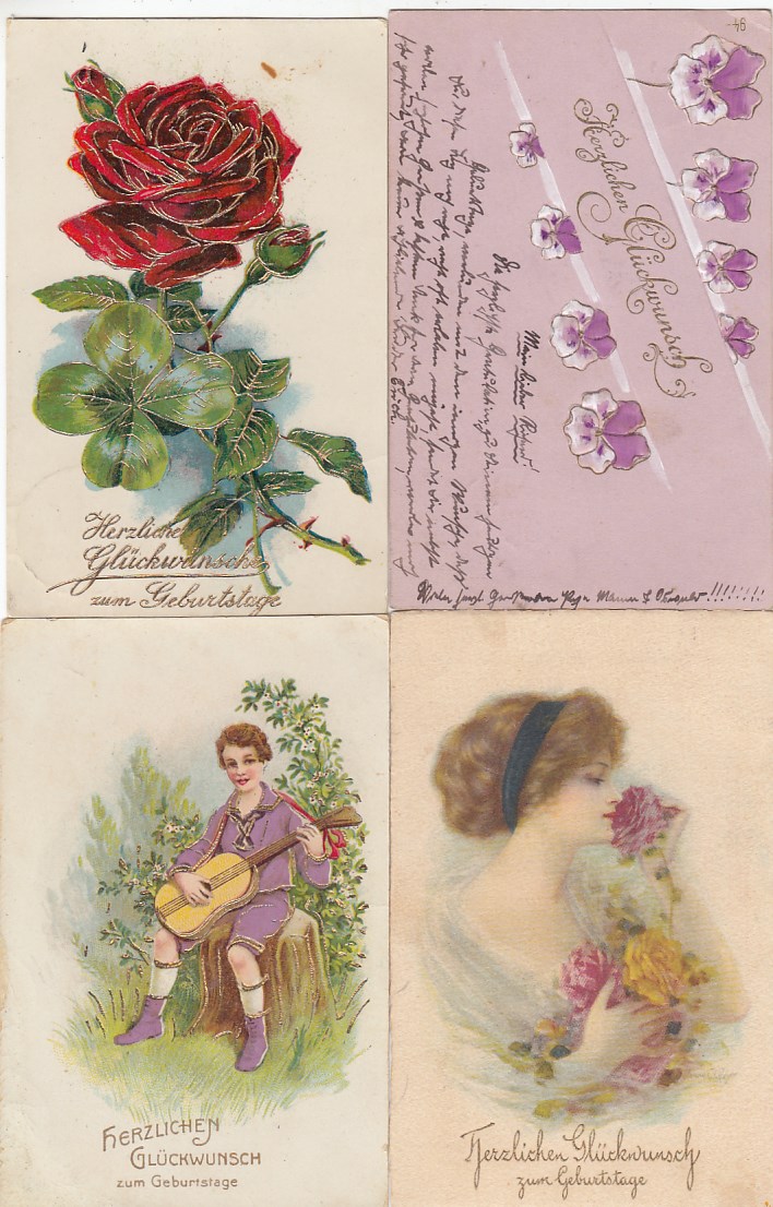 4x alte Ansichtskarte Glückwunsch zum Geburtstag vor 1945