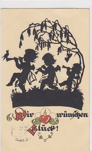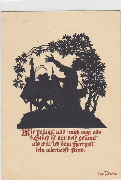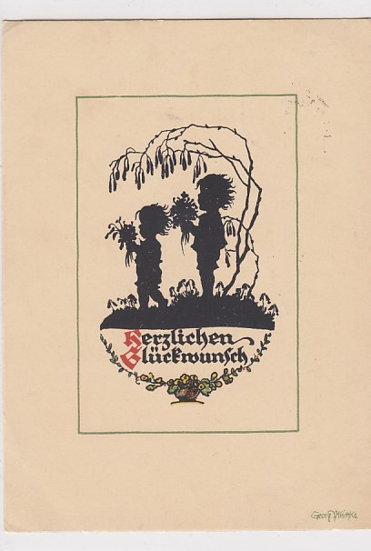 alte Glückwunsch Ansichtskarte Fröhliche Ostern Scherenschnitt Georg Plischke