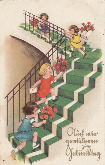 alte Glückwunsch Ansichtskarte Fröhliche Pfingsten Kinder 1915
