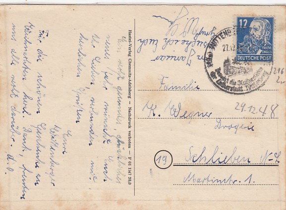Briefmarken auf AK nach 1945 Ansichtskarten Postkarten