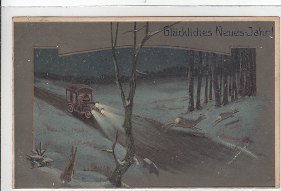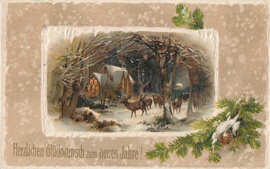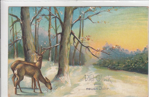 Glückwunsch AK Neujahr Ansichtskarte Jagd Rotwild Eisenbahn