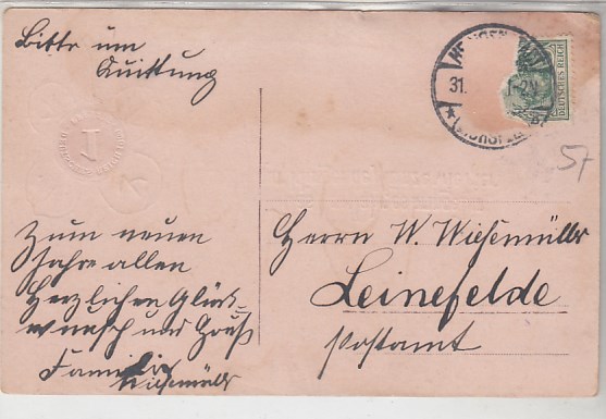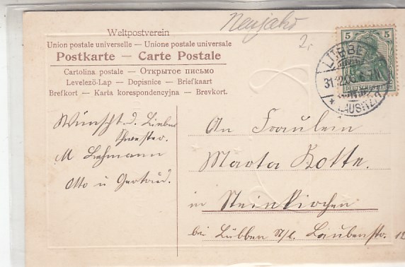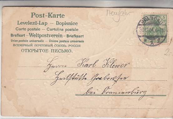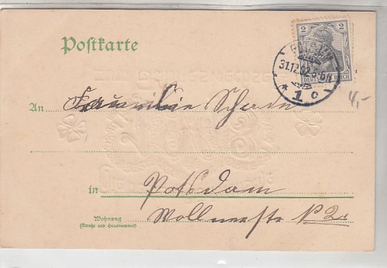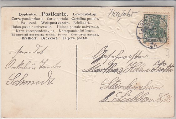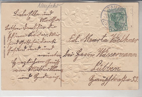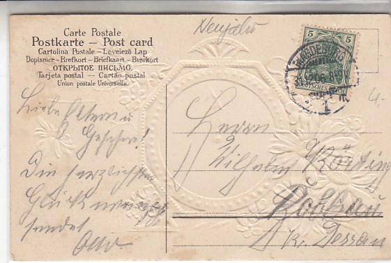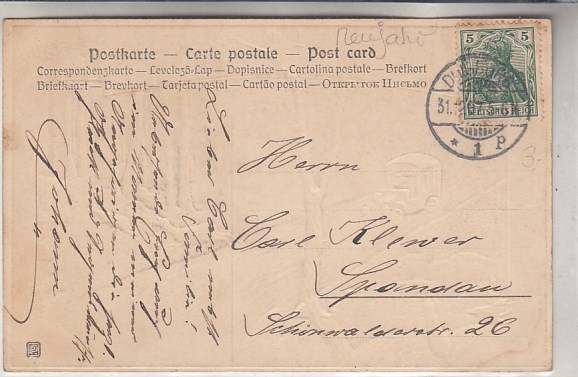 Glückwunsch AK Neujahr Ansichtskarte Landpoststempel Dessau-Kleinkühnau
