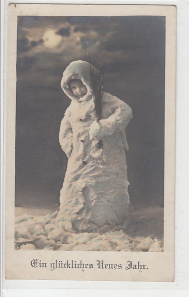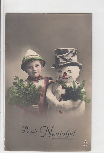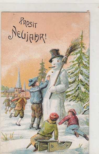 Glückwunsch AK Neujahr Ansichtskarte Kinder Schneemann