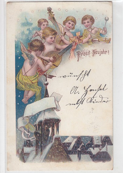 Glückwunsch AK Neujahr Ansichtskarte Kinder Engel 1900