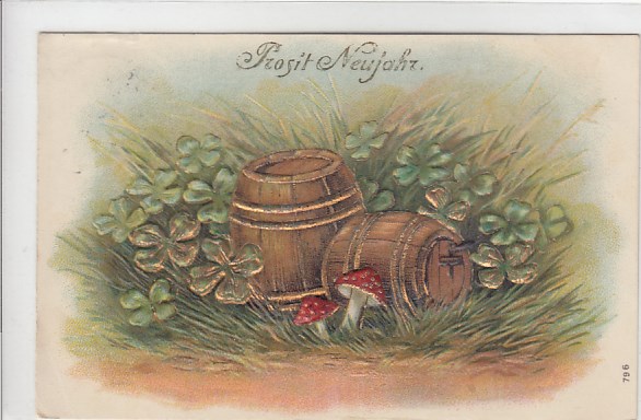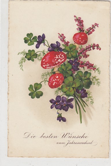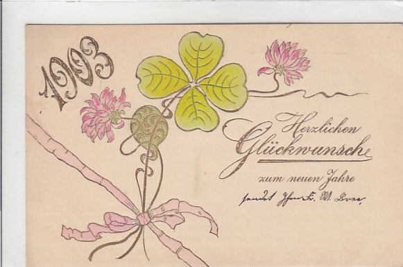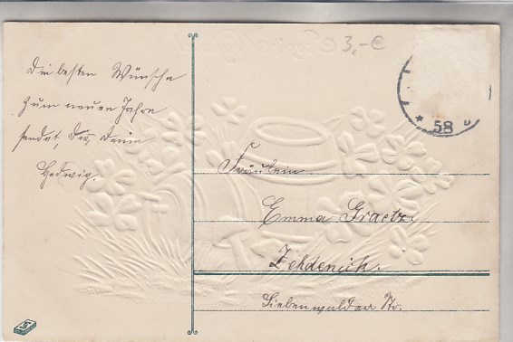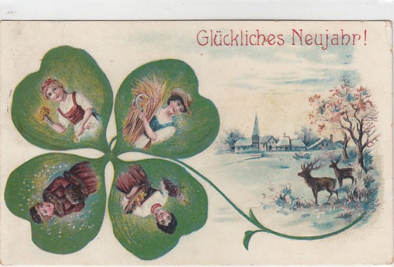 Glückwunsch AK Neujahr Ansichtskarte Kleeblatt Prägekarte