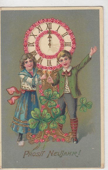 Glückwunsch AK Neujahr Ansichtskarte Kleeblatt Kinder 1908