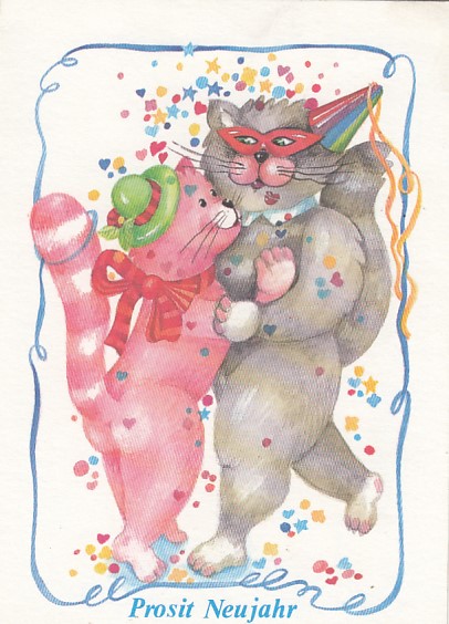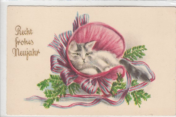 Glückwunsch AK Neujahr Ansichtskarte Katze