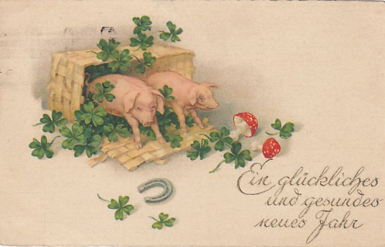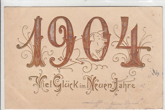 Glückwunsch AK Neujahr Ansichtskarte Hufeisen Schweine 1903