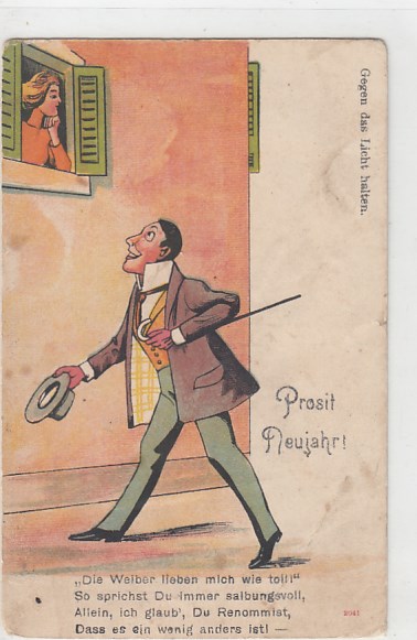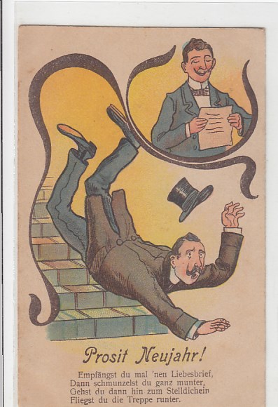 Glückwunsch AK Neujahr Ansichtskarte Humor Ulk Scherz Stroch
