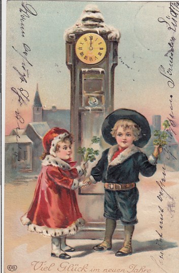 Glückwunsch AK Neujahr Ansichtskarte Kinder Wanduhr