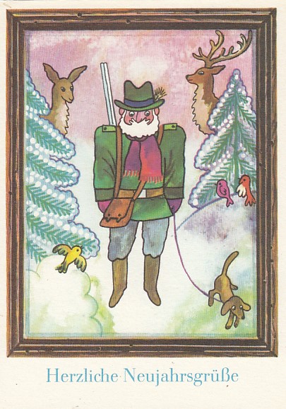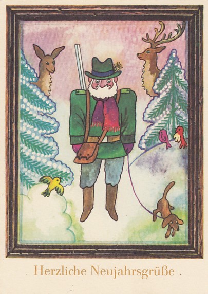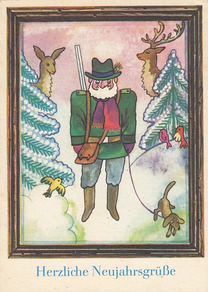 Glückwunsch AK Neujahr Ansichtskarte Jagd Jäger