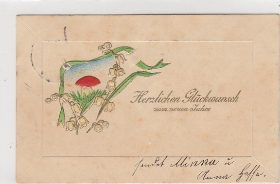 Glückwunsch AK Neujahr Ansichtskarte Klingel Stempel Tannwald-Schumburg