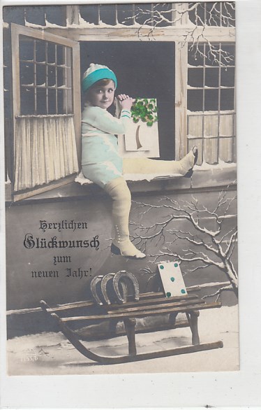 Glückwunsch AK Neujahr Ansichtskarte Winter Schlitten