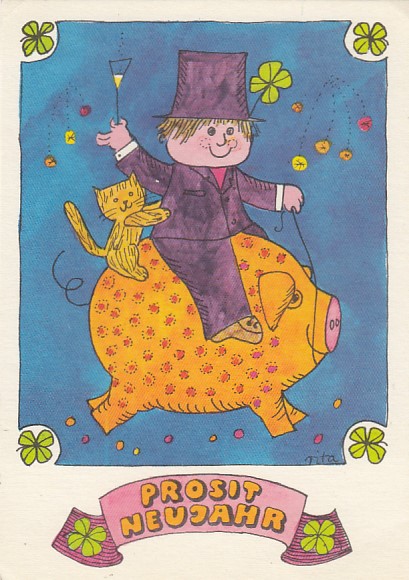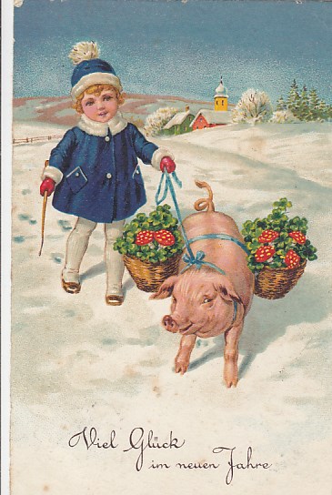 Glückwunsch AK Neujahr Ansichtskarte Schwein