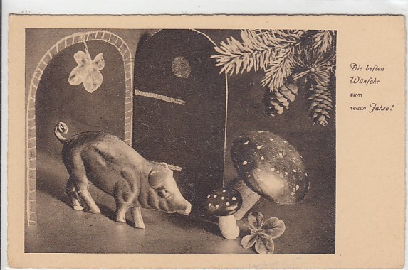 Glückwunsch AK Neujahr Ansichtskarte Schweine und Pilze