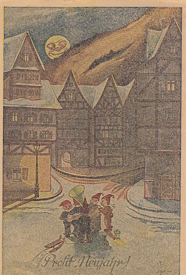 Glückwunsch AK Neujahr Ansichtskarte Zwerge Künstlerkarte