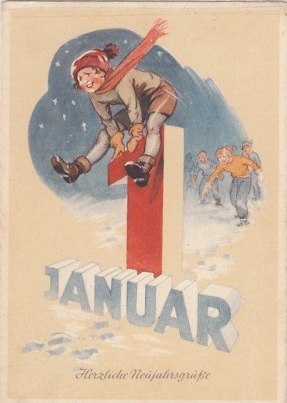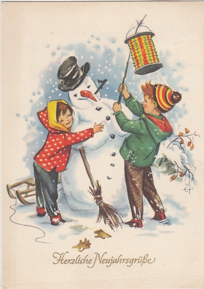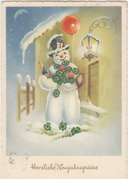 alte Glückwunsch Ansichtskarte zum Neujahr Schneemann