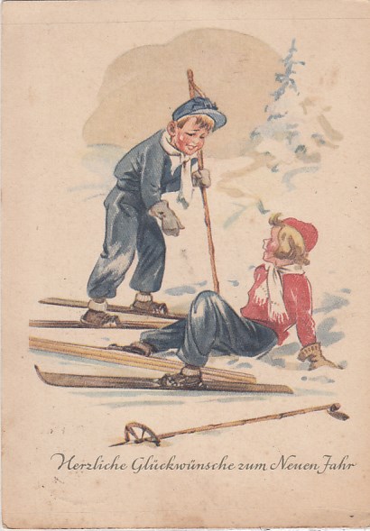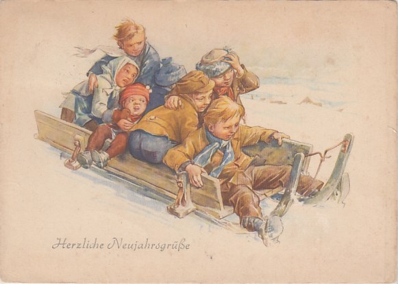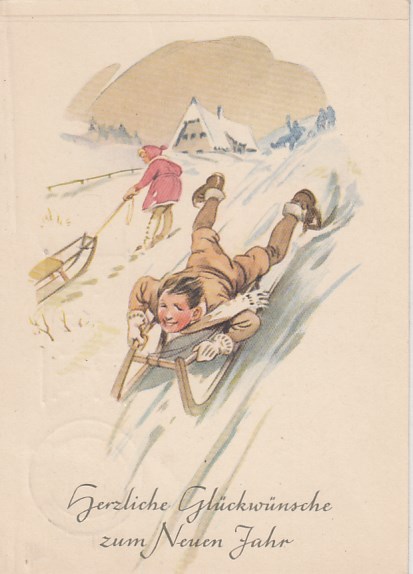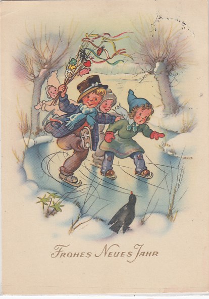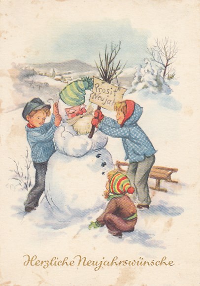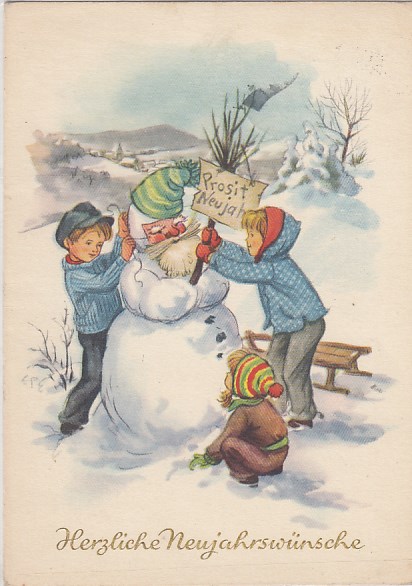 alte Glückwunsch Ansichtskarte zum Neujahr Schneemann Puppen