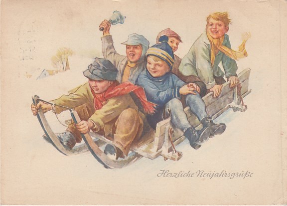 alte Glückwunsch Ansichtskarte zum Neujahr Schaukelpferd